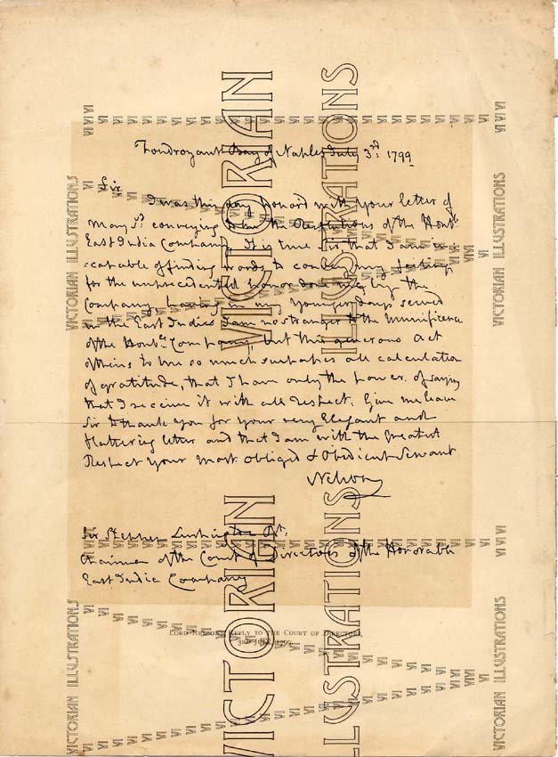 Lord Nelson's Reply To the Court of Directors, 3rd July 1799 GB£15 + p&p email enquiry N.B. The "Victorian Illustrations" and "VI" watermarks do not appear on the originals