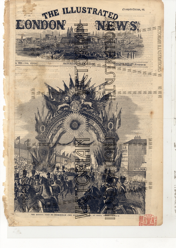 The Queen's Visit to Birmingham- The Gunmakers Arch at Gosta Green The Illustrated London News 3/7/1858 30x40 cm GB£20 + p&p email enquiry