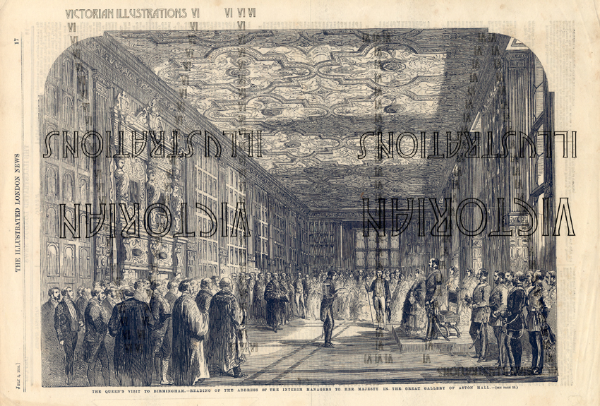 The Queen's Visit to Birmingham-Reading of the Address of the Interim Managers to Her Majesty in the Great Gallery of Aston Hall The Illustrated London News 3/7/1858 40x30 cm GB£20 + p&p email enquiry