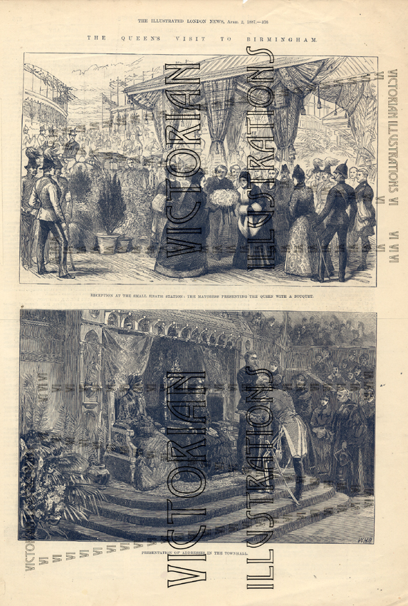 The Queen's Visit to Birmingham-Arrival of the Queen at the Pavilion to lay the Foundation Stone of the New Victoria Courts- The Gunmakers' Arch The Illustrated London News 2/4/1887 30x40 cm GB£20 + p&p email enquiry